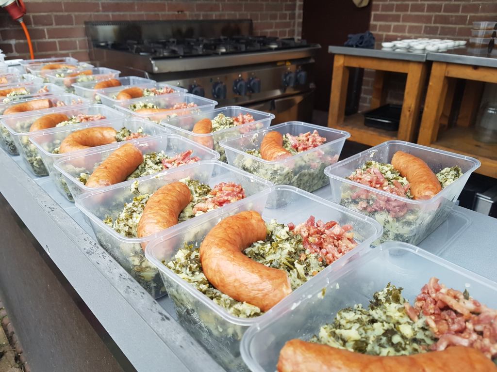 Waar het gisteren nog naar bloemetjes rook, ruikt het nu heerlijk naar uitgebakken spek en verse boerenkool in de keuken van ’t Huukske. Wederom wordt er gekookt dóór buurtbewoners, vóór buurtbewoners die in deze bijzondere tijden wel een extra steuntje in de rug kunnen gebruiken. In ieder geval de komende 6 dinsdagen worden er gezonde en voedzame maaltijden gekookt. Uiteraard volledig Coronaproof. Vandaag zijn er 20 porties heerlijke boerenkoolstamppot gemaakt die straks door onze vrijwilligers worden rondgebracht naar bewoners van Arnhem West. Met dank aan buurtbewoners en vrijwilligers van ’t Huukske voor dit warme initiatief. En aan de Dullertstichting en team leefomgeving voor de financiële bijdrage! Ben jij of ken jij een buurtbewoner van Arnhem West die misschien in een isolement zit, moeilijk ter been is, of een kleine knip heeft? En een maaltijd en een praatje goed kan gebruiken? Geef je dan gerust op via huukske.aw@gmail.com