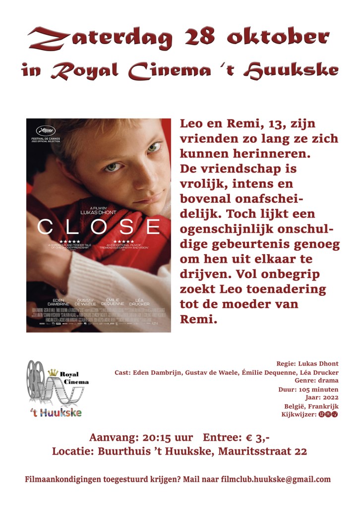 Royal Cinema ’t Huukske vertoont Close op 28 oktober 14 oktober 202314 oktober 2023huukskeadmin Graag contant betalen! Dit delen: Delen op X (Opent in een nieuw venster) X Share op Facebook (Opent in een nieuw venster) Facebook Vind-ik-leuk Aan het laden... Gerelateerd