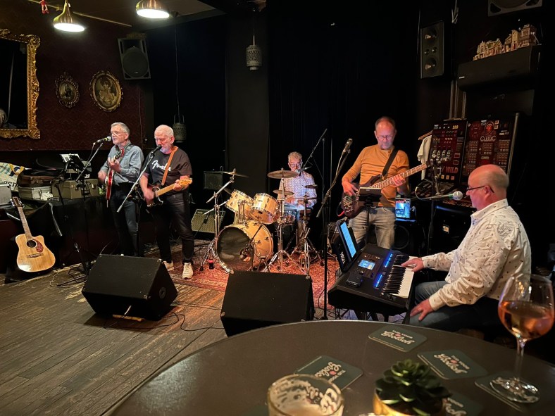 Het optreden van The Grey Men was, een jaar geleden, zo succesvol en gezellig dat we ze weer teruggevraagd hebben. Naast de “standaard” instrumenten drum, bas en gitaar worden ook keybord, accordeon en mondharmonica bespeeld door het zeer ervaren vijftal. De vaak meerstemmige zang geeft nog een extra dimensie aan het repertoire met veelal herkenbare nummers uit de jaren ’60 en ’70. The Eagles, Cliff Richard, The Cats, JJ Cale en alles wat daar tussen zit komt voorbij. ’t Huukske vrijwilliger Guus Steenhuis is een van de 5 muzikanten.