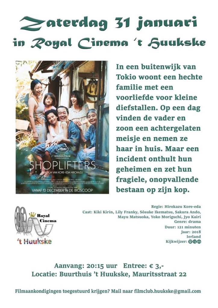 Gouden Palm-winnaar over een handvol verstotenen die samenleven in een klein huisje. Liefde is er genoeg, maar geld niet. En dat is waarom ze zich regelmatig schuldig maken aan winkeldiefstal. Kore-eda, de Japanse grootmeester van het familiedrama, stelt zich in Shoplifters de vraag wat belangrijker is in een gezin: de bloedband, of de tijd die je samen doorbrengt. De begripvolle en warme manier waarop Kore-eda de interactie binnen dit samengestelde gezin weergeeft, maakt duidelijk dat hij veel sympathie voor ze voelt. Toch romantiseert hij hun lot nooit.